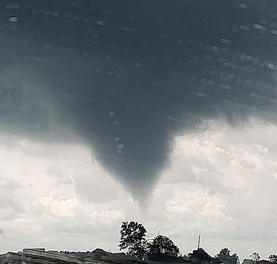 This menacing looking cloud was spotted at approximately 11:40 Sunday morning near Scott. While it looked like a tornado, it was a cold air funnel, one of several spotted around the area. Some of the weak funnels touched down but no damage was reported. Photo courtesy of Emily Sorg