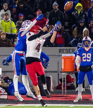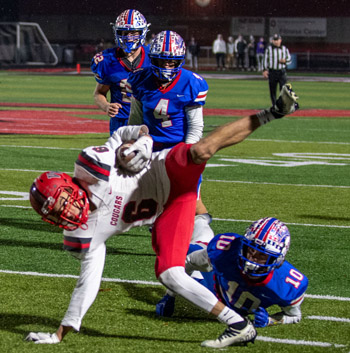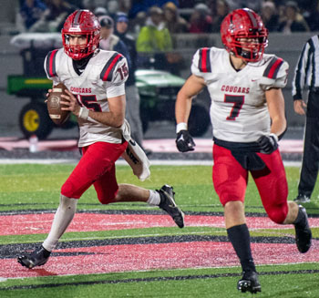 The No. 6 seed Cougars (12-1) defeated the second seeded Knights 40-35 to advance to the regional finals for the third straight season. Senior quarterback Aidan Pratt led the way with five rushing touchdowns and a fourth quarter touchdown pass, which proved to be the game winner.