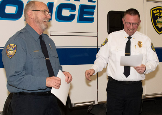 The Van Wert Police Department recently held its first annual appreciation for employees of the VWPD. Employees were recognized for five or more years of service, with Sgt. Kurt Conn and Dispatcher Rick Spoor having 30+ years of service.