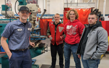 Sophomores visiting the Precision Machining program were able to create an aluminum spinning top, learning facing skills on manual lathes, turning down the metal using a CNC, and engraving the metal using both a 3 axis and fifth axis CNC.
