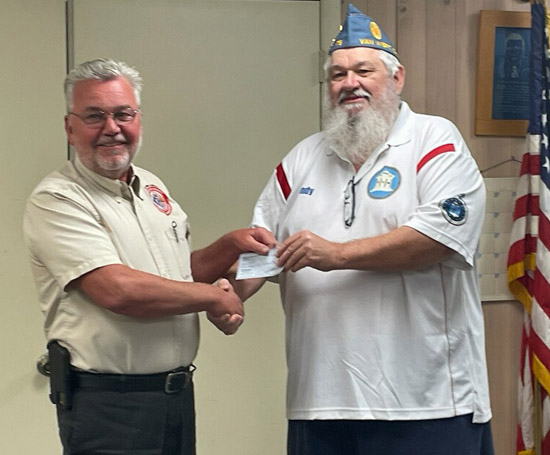 The Sons of the American Legion recently made a donation to the Van Wert County CERT team for their help at a recent car and motorcycle show. Pictured are CERT Director Rick McCoy and Sons of the American Legion Commander Randy Matthews. Photo submitted