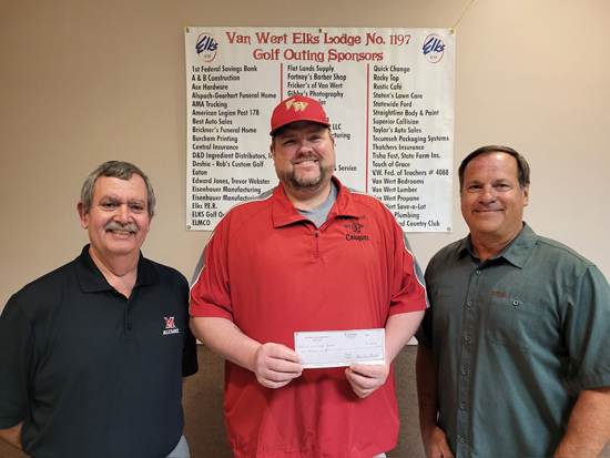 The Golf Committee from Van Wert Elks Lodge 1197, Benevolent and Protective Order of Elks recently donated $500 to the Van Wert Youth Baseball Association for the 2023 season. With the financial help from the sponsors, youth ages 8-12 are able to travel and play teams within a tri-county area. On an average they have six teams and over 80 kids who are able to participate in the program. Pictured from left to right are Paul Cucciarre, golf committee member; Ben Price, Van Wert Youth Baseball President, and Curt Rager, golf committee member. Photo submitted