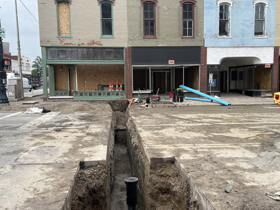 Pipeline work continues along West Main St., between Washington St. and Jefferson St. in downtown Van Wert. If all goes as planned, the street should re-open to traffic by late Thursday afternoon. Scott Truxell/Van Wert independent