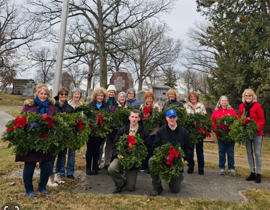 Isaac Van Wart members recently assisted Middle Point Boy Scouts Troop 32 with placing wreaths on veterans graves at Woodland Cemetery. This was in conjunction with the National Wreaths Across America, which originally began in Arlington Cemetery with the goals of “Honor, Remember, Teach.” A moment of silence is given at each veteran’s grave after saying their name out loud and then placing a wreath there. Photos submitted