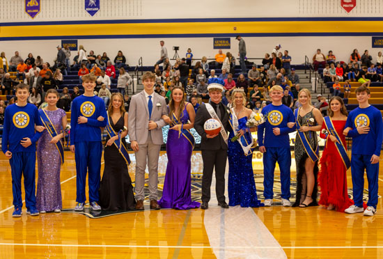 Ethan Scaggs and Taylor Post were crowned Lincolnview homecoming king and queen before Saturday night’s boys basketball game vs. Parkway. Freshmen members of the court were Grace Custer and Max Hammons, along with sophomores Kendall Hoffman and Holden Price, juniors: Lakyn Bailey and Bennet Kill. Seniors on the court were Addysen Stevens, Post, Saige Menke, Scaggs, Reide Jackson and Luke Bollenbacher. Photo courtesy of Ally Buzard