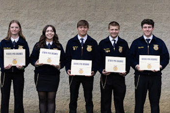 (Students receiving State FFA Degrees, Dakota Parrish, Kaylea Short, Levi Grace, Tyler Hoblet and Nolan Walls. Photo submitted