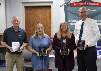 Before the meeting, a reception was held to honor retiring employees – Crestview High School Principal Dave Bowen, bus driver/paraprofessional Linda Clay, elementary teacher Greg Rickard and special education teacher Diane Wilson. Each one was presented with a plaque and well wishes in retirement.