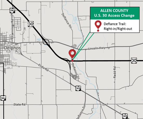 The Ohio Department of Transportation will remove the median, limiting motorists to right turns onto and off the highway at U.S. 30 and Defiance Trail, just east of the city of Delphos on Thursday, May 30. Barrels and barricades will be placed across the median of the intersection, then ODOT crews will soon begin removing the pavement between the eastbound and westbound lanes of U.S. 30.Signs on U.S. 30 and the local roads approaching the intersections will be modified to reflect the change in access. ODOT District 1 Deputy Director Chris Hughes said the change will reduce the risk of severe crashes and fatalities.