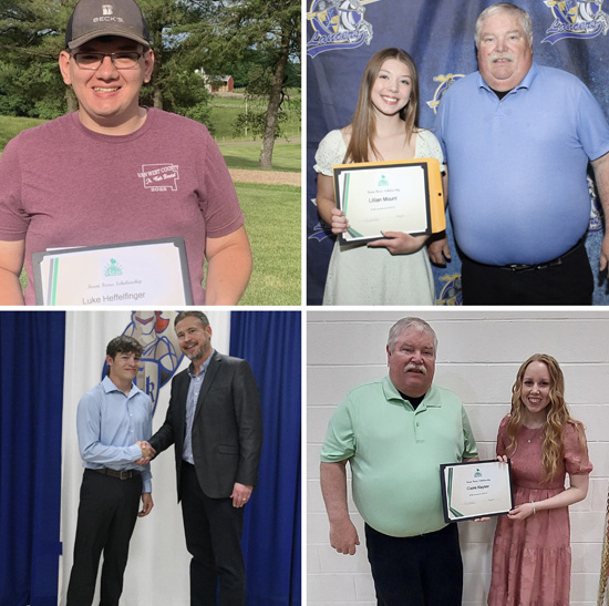 The recipients of the 2024 Farm Focus Inc. scholarships are Luke Heffelfinger and Lillian Mount awarded $2,000 each, and Levi Grace and Claire Keysor awarded $1,000 each.
