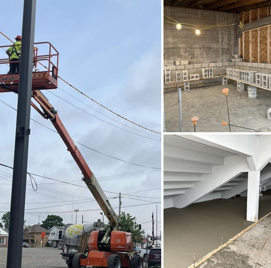 With the 2024 high school football season approaching, work continues at Eggerss Stadium in Van Wert. This week, crews began installing steel beams for a new press box, pouring concrete under the home side of the stadium and putting up walls in the concession stand. The work is all part of Phase II of a massive renovation project at the historic stadium. VWCS photos