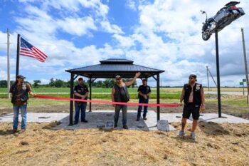 “We lost one of our brothers in 2021 – he had a massive heart attack and his mom and his sister through his estate donated some money and said they wanted to see something done on our corner property, so we were able to utilize those funds,” he stated. “Last summer we started to design and do a layout of what we wanted to do and we decided right away we wanted to put a motorcycle up on a pole, so that was donated by a gentleman who lost his father in 2022.”