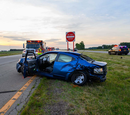 The Van Wert Fire Department, along with Middle Point Fire & EMS were dispatched to the intersection of U.S. 30 and Mendon Road at approximately 6 a.m. this morning, after a collision involving a truck and a car. The northbound car had pulled from Mendon Road onto the highway and was hit by the eastbound truck. One person was transported to OhioHealth Van Wert Hospital and both vehicles were towed from the scene. Bob Barnes/VWFD photographer