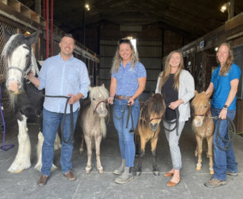 From left to right are Seth Baker (Van Wert County Foundation CEO), Abigal Neville (Marsh Foundation Equine Program Coordinator), Laney Nofer (Van Wert County Foundation Director of Philanthropy) and Stephanie Hall (Marsh Foundation Barn Manager) are pictured with four of the horses purchased by The Marsh Foundation with grant money. Photo submitted
