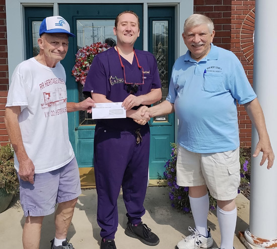 The Venedocia Lions Club and Laing Family Dentistry were among the many businesses and organizations that gave donations for this weekend’s Railroad Heritage Weekend Model Railroad Show and Swap. The donations will allow show officials to give gratuities to exhibitors who bring their model railroad layouts and displays to the show at the Van Wert County Fairgrounds, which helps to reduce their costs. There will be six large layouts this year. Pictured above are Bill Stanley, Jerry Koenig of the Venedocia Lions Club and Show Coordinator Chuck White. Pictured below are Stanley, Dr. Bob Laing and White. Photos submitted