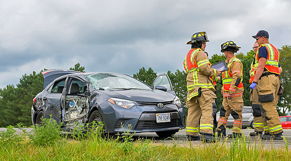 A car and semi trailer-trailer rig collided early Friday afternoon at the intersection of U.S. 224 and Lincoln Highway, according to the Van Wert County Sheriff’s Office. Investigating deputies said the accident occurred at approximately 1:22 p.m. when a westbound car on U.S. 224 slowed to turn right onto Lincoln Highway and the semi, which was following the car, failed to react in time. The semi veered to the right of the car in an attempt to avoid an accident, but hit the passenger side of the turning car. One person was taken to Ohio Health Van Wert with injuries suffered in the crash by the Van Wert EMS. The automobile sustained very heavy damage, while the semi had lighter damage. The semi driver was cited for causing the accident. Deputies also provided traffic control at the accident scene. Bob Barnes,VWFD photographer