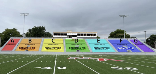 With Phase II of the Eggerss Stadium renovation project nearing completion, the Van Wert Athletic Department has announced that the seating chart has been restructured for easier navigation. Sections have been rezoned by the aisle ways (see seating chart graphic). Season ticket holders affected by the renovation will be contacted by the athletic department in days to come if they haven’t been already. Season tickets and punch passes will be available for purchase in the high school office from 8 a.m. to 3 p.m. August 12-16, and until halftime of the August 16 scrimmage vs. Crestview.