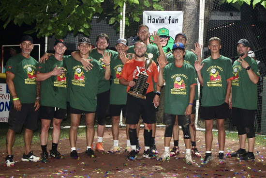 Just call them back-to-back champions. The defending 2023 champion Eager Beavers retained their title by defeating the Roo Crew 14-2 during Saturday night’s wiffleball championship at Wrenway Park. Photo courtesy of Ohio City’s Pride