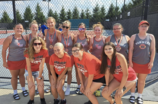 Van Wert finished second behind Elida at the Cougar Classic at the Van Wert County Foundation Tennis Complex on Saturday. Mandy Burenga took home first place at first singles, while Sophie Gearhart (second singles) and Alisah Sheckels and Leia Hoersten (second doubles) earned runner-up honors. Lauren Gearhart (third singles) finished in third and the first doubles team of Carolina Zappa and Lillie Mull finished fourth. Van Wert will host Celina today. Photo submitted