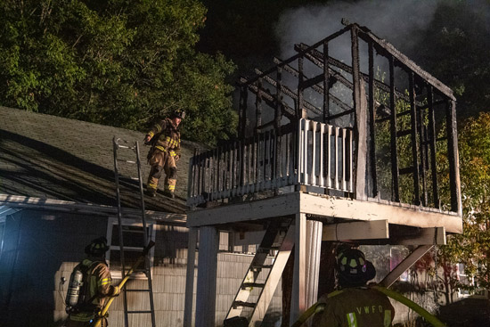 The Van Wert Fire Department was called to a tree house fire in the 200 block of S. Vine St. at approximately 9:15 Thursday night. Upon arrival the tree house was fully engulfed in flames. The fire was quickly brought under control, preventing the possible spreading to the structure that was very close to the flames. Firefighters were on the scene, and the Van Wert Police Department assisted at the scene. The cause of the fire remains unknown. Bob Barnes/VWFD photographer