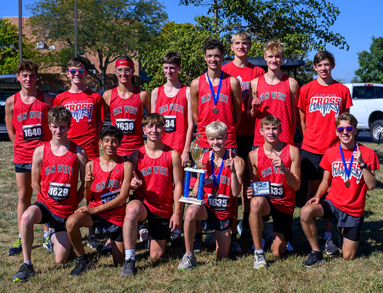Van Wert’s varsity boys’ cross country team raced to the team title during Saturday’s Ohio Health Invitational at the Van Wert Reservoir on Saturday. The Cougars also had the invidual champion, Owen Scott. Lincolniview and Crestview also competed at the annual event. A full story can be found on the Sports page. Bob Barnes/Van Wert independent