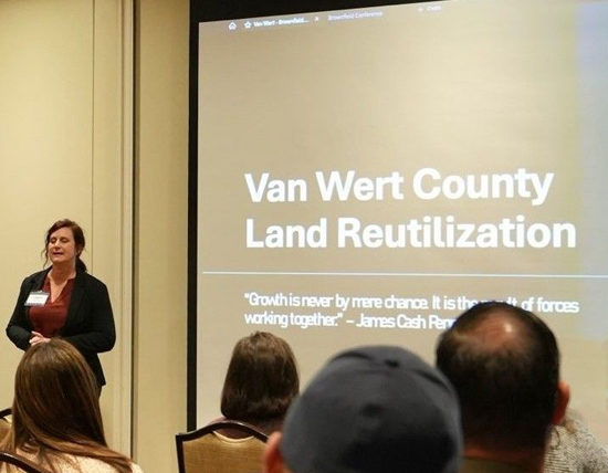 Christina Martin, administrator of the Van Wert County Land Reutilization Corporation, was a featured speaker at the inaugural Fall Land Bank Summit held on October 3, in Mount Vernon. Martin shared her insights on the impacts of the Van Wert County Land Bank, focusing on both residential and commercial economic development. Attendees of the summit had the opportunity to learn about board of director roles, administrative solutions, and best practices in land bank operations. The event was hosted by the Ohio Land Bank Association in partnership with the Knox County Land Bank. Martin has a proven track record in land bank administration and the Van Wert County Land Reutilization Corporation has successfully implemented various initiatives to address vacant and blighted properties, contributing to a more vibrant and sustainable community. Photo submitted