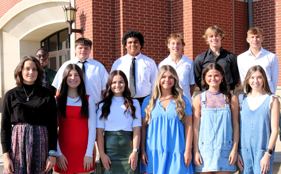 Homecoming court members include freshman attendants Ava Elston and Gabriel White; sophomore attendants Libby Jones and Billy Vaughn; junior attendants Kenzie Couch and Nick Edwards; senior queen candidates Nya Wessell, Mia Rager, and Lexi Deitemeyer, and senior king candidates Briston Wise, Sam Houg, and Drew Laudick.