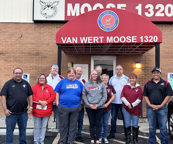 The mission of Loyal Order Of Moose is to serve the community, support youth and elderly and celebrate life. While supporting a retirement home in Moosehaven, Florida and a children’s home in Mooseheart, Illinois, Van Wert Moose Lodge 1320 also serves the local community. After a few phone calls and a little organization, the Board of Officers of the Van Wert Moose Lodge gathered with four local county school food service directors to donate money to help pay past due lunch fees. The donation totaling $6671 went to Delphos Jefferson, Lincolnview, Crestview, and Van Wert City Schools. With this donation, it is the hope of the Van Wert Moose Board of Officers and membership to ease some financial strain on families in the community. Anyone who would like to learn more about the Loyal Order Of Moose in Van Wert may contact administrator Brent Agler at 419.2382790. Moose Lodge 1320 photo