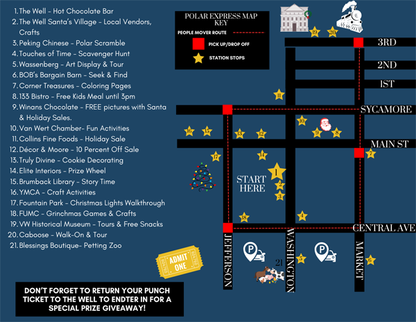 Grab Your Train Ticket: Start your adventure in historical downtown Van Wert. Make sure to pick up your train ticket and map to guide you through all the festivities.