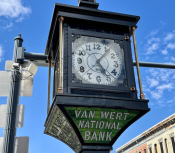 In July of this year, the newly refurbished Van Wert National Bank clock was reinstalled at its familia spot at Main and Washington streets in downtown Van Wert, and it was officially unveiled and dedicated during a ceremony held July 25. That was just over a year after employees of Smith’s Bell and Clock Service of Camby, Indiana, disassembled the iconic clock and took it away for repairs and restoration.