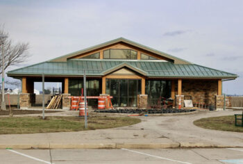 The new structures feature a lodge-style design with everything under one roof, including larger restrooms with adult changing tables, a lobby area with vending and regional tourism information, and an attached and covered outdoor picnic area. Included in the new design are landscape upgrades that include Ohio native plants.