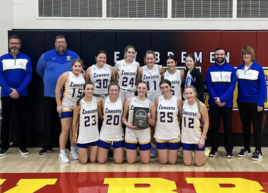 Lincolnview won the championship at the T&T Automotive Holiday Tournament in New Bremen. The Lancers earned the title with a 47-40 win over New Bremen on Friday and a 61-44 victory over Anna on Saturday. Photo submitted