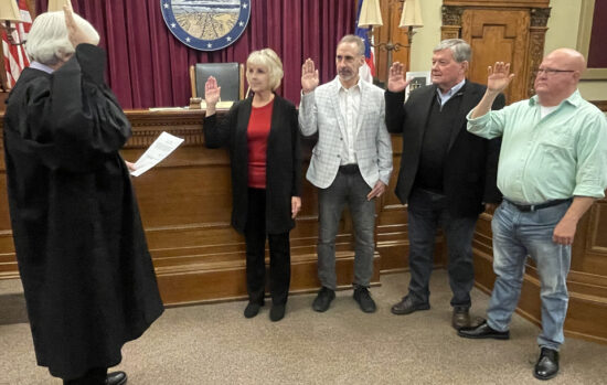 Van Wert County Common Pleas Court Judge Martin D. Burchfield recently administered the oath of office to Van Wert County Recorder Kim Hughes, Van Wert County Commissioners Todd Wolfrum and Stan Owens, and Van Wert County Treasurer Jeff McIntosh. All four, along with Judge Burchfield ran unopposed in the November general election. More photos can be found below. Photo submitted