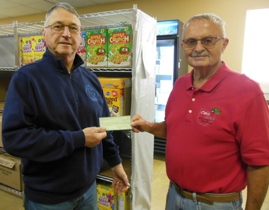 Van Wert Elks Lodge 1197, Benevolent and Protective Order of Elks recently donated $2,000 to the Trinity Friends Church for their food pantry. The money comes from a Beacon Grant the lodge received from the Elks National Foundation, a perpetual trust fund established in 1928 by the Benevolent and Protective Order of Elks. Contributions to the foundation are made each year by over 800,000 Elks and their families and friends from the 1800 Elks Lodges across the United States, Puerto Rico and the Philippines. The food pantry is open from 12-2 p.m. and 4-5:30 p.m. every Tuesday. They are also open the third Saturday of each month from 10 a.m. until 12 p.m. Shown above are Larry Adam representing the food pantry and Michael C. Stanley, Lodge Elks National Foundation Chairman. Photo submitted