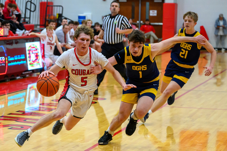 The Cougars trailed 9-8 after the opening quarter, then trailed 22-17 as Ottawa-Glandorf’s Grady Toumazos drilled a trey at the halftime buzzer. The Titans extended their lead to as much as eight before leading 34-29 at the end of the third quarter.