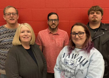 Cast members for the upcoming production of “Suitehearts” are (front row, left to right): Front row (left to right) Michelle Foster and Whitnie Twigg. Back row:  Ed Eichler, Travis Nihiser and Daniel Sanderson. Photo submitted