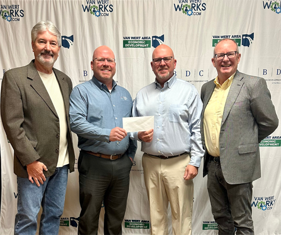 The Business Development Corporation of Van Wert County (BDC) has announced a generous donation from Advanced Insurance that will support the organization’s Capital Campaign. BDC President Andy Czajkowski said the BDC is grateful for the donation and said it will have a direct and positive impact to help attract new businesses, support existing ones, and create a vibrant economic future for Van Wert County. Pictured from left to right are John White, BDC Capital Campaign Manager; Adam Anspach, Advanced Insurance; Aaron Anspach, Advanced Insurance, and Andy Czajkowski, BDC President. Photo submitted