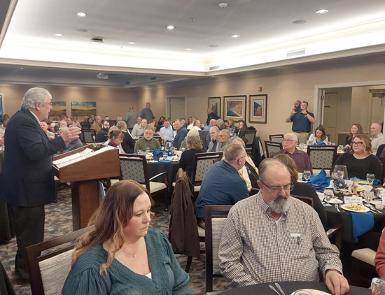 Van Wert FOP Lodge 62 held its 2025 community fundraiser banquet to a sold out crowd at Willow Bend Country Club on Saturday. The event was a huge success with the lodge far exceeding last year’s donations. One of the highlights of the evening was FOP Lodge 62 President Bruce Showalter (right) presenting the Lodge 62 Presidential Award to Denny Wagonrod (left) in honor of his 45 year career in law enforcement and service to the Van Wert City Police Department and the Van Wert County Sheriff’s Office, as well as the Van Wert community. Lodge 62 thanked all donors and attendees for their generosity. Donations received from the fundraiser allows the lodge the opportunity to pass the funds onto local organizations throughout the year. Photos submitted