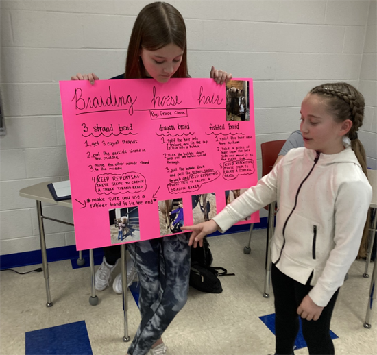At the meeting, Grace Clouse gave a demonstration on different types of braids for horse tails and how to create them. Cloverbud members went to a separate room for their own activities, while the regular members played “Head, Shoulders, Knees, Toes, Cup.” Refreshments were served after the meeting.