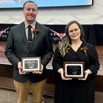 Tressa Ringwald and Austin Meyer were inducted during Vantage’s 47th annual All-Boards Dinner and Alumni Hall of Fame program Thursday night. Both graduated in 2013, Ringwald from Lincolnview and Meyer from Ottoville.