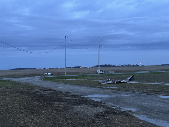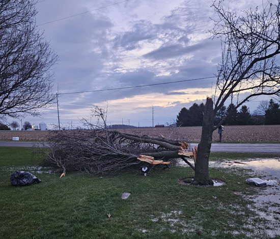 Powerful storms with high winds and heavy rain moved through the area late Wednesday night, causing damage that became more evident at daybreak. Pictured is damage at Church Rd., Dog Creek Rd., Elgin and Gamble Rd. Photos courtesy of
