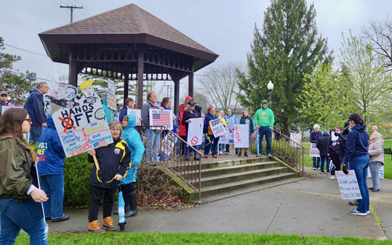 Approximately 100 people gathered for Saturday’s “Hands Off!” protest, which began at Fountain Park in downtown Van Wert, then moved to U.S. 127 (Washington St.) in front of and across from the Wassenberg Art Center. The nationwide rally was designed to protest cuts made by President Donald Trump’s administration. Photo submitted