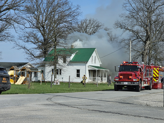 Firefighters from multiple departments were summoned to battle a house fire in the 4500 block of Lare Road, near Mentzer Road in Convoy Wednesday morning. The call came in shortly before 10:30 a.m. Convoy Fire and EMS, Van Wert Fire Deaprtment, Payne Fire Department, Monroeville (IN) Fire Department and Wren EMS were dispatched to the scene. Upon arrival, crews discovered a working fire on the second floor of the residence. There have been reports of two people being injured at the scene. Van Wert County deputies, along with Van Wert County CERT were also at the scene. No other details are available at this time. Photo courtesy of Chad Jay