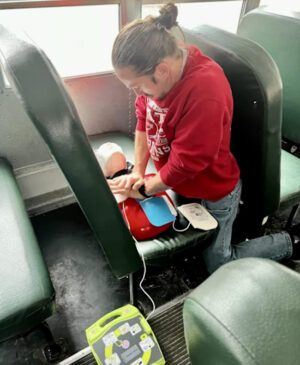 “With the passing of House Bill 47, schools are now required to conduct quarterly cardiac emergency drills,” she said. “Today’s scenario was very impactful for our staff due to the limited space on the bus to administer CPR or use an AED. We’re adjusting our protocols to align with the new law and help ensure we’re fully prepared.”