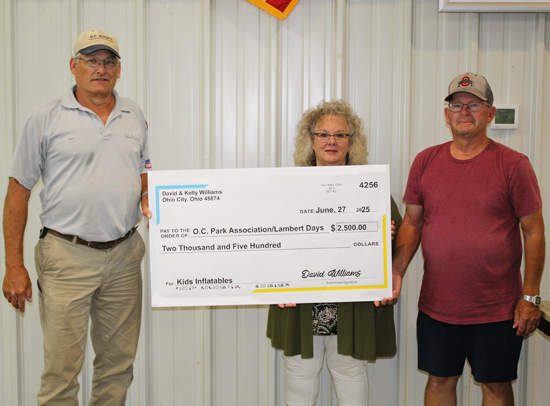The Ohio City Park Association/Lambert Days Committee extends a heartfelt thank you to David and Kelly Williams for their generous sponsorship of the kids inflatables and games at this year’s Lambert Days, July 17-20. Because of their support, all children can enjoy the inflatables and games absolutely free, which helps make the celebration more fun and accessible for everyone in the community. Pictured from left to right are David Williams, Brenda Weaver and Jason Parrish. Photo submitted