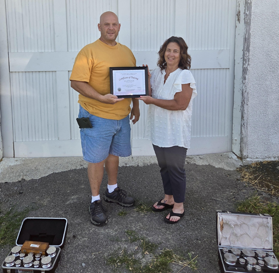 Van Wert County Auditor Jami Bradford has announced that Chad Thornell has successfully completed a certified training program in Weights and Measures, earning a Certificate of Training from Ohio Department of Agriculture Division of Weight & Measures. Thornell will assume the role of Weights and Measures Inspector for both Van Wert and Paulding counties. He’s replacing Donald Stemen who retired in January. Shown above are Thornell and Bradford. Pictured below are Paulding County Auditor Claudia Fickel, former Paulding County Weights and Measures Inspector Donald Stemen, Thornell and Bradford. Photos submitted