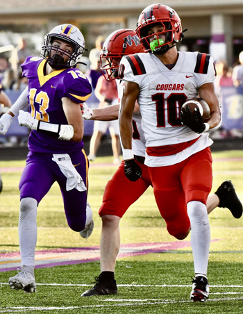The Cougars were able shake off the miscues with a touchdown shortly before halftime to snap a 7-7 tie, then scored four straight touchdowns in the second half for a 42-7 victory over the Golden Bears. Zach Crummey completed 13-of-18 passes for 277 yards, two touchdowns and one interception, plus 11 carries for 81 yards and two touchdowns. Keaten Welch grabbed four passes for 132 yards and a score, and Micah Cowan hauled in eight receptions for 101 yards and a touchdown. Xavier Kelly finished with 13 carries for 105 yards and two touchdowns. On the defensive side of the ball, a pair of linebackers – Geary Hilleary and Briggs Wallace made a number of plays against Bryan.