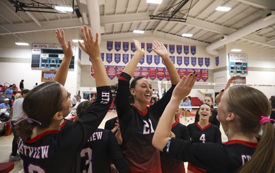 Crestview had plenty to celebrate Thursday night, as the Lady Knights captured their fifth consecutive NWC volleyball championship with a 25-27, 25-8, 25-12, 25-21 road victory over Lima Central Catholic. Crestview (13-6, 7-0 NWC) hasn’t lost a conference match since the 2021 season. Wyatt Richardson/Van Wert independent