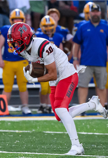 -Plymouth’s Isaiah Miller ran for 123 yards on 23 carries during the Big Red’s 20-12 win over New London. Ben Trimmer added 51 yards on 14 carries and a touchdown while Lincoln Distl had 72 yards on 19 carries with a score. Cullen Mason provided the defensive spark with a 25-yard interception return for a touchdown to give the Big Red their first win of the season. Distl also had an interception on defense.