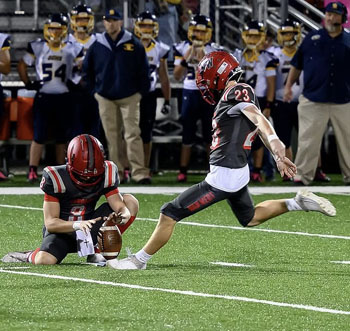 -Aidan Eastham kicked three field goals (16, 37, 34 yards) to go along with a Gavin Quellhorst 22-yard touchdown reception to help New Bremen defeat Coldwater 16-7. It was the Cardinals’ first win over Coldwater since 1997.