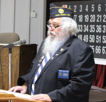Past Post Commander Bill Marshall updated those in attendance on the Memorial Walkway, just outside Post 178 on W. Main St. He explained the Van Wert Post has been in existence since 1921 and he said different monuments have been added over the years, including World War I, World War II, Korea and Vietnam. He said through donations and sales of bricks on the walkway, the Post has been able to add new monuments, including first responders/police and fire, along with one honoring National Guard members.